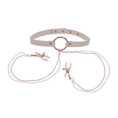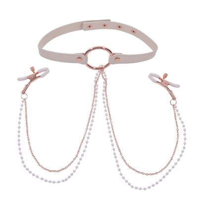 Spice up your playtime with the Peaches ‘n CreaMe Collar with Nipple Clamps and experience extraordinary pleasure! This playful accessory ble…